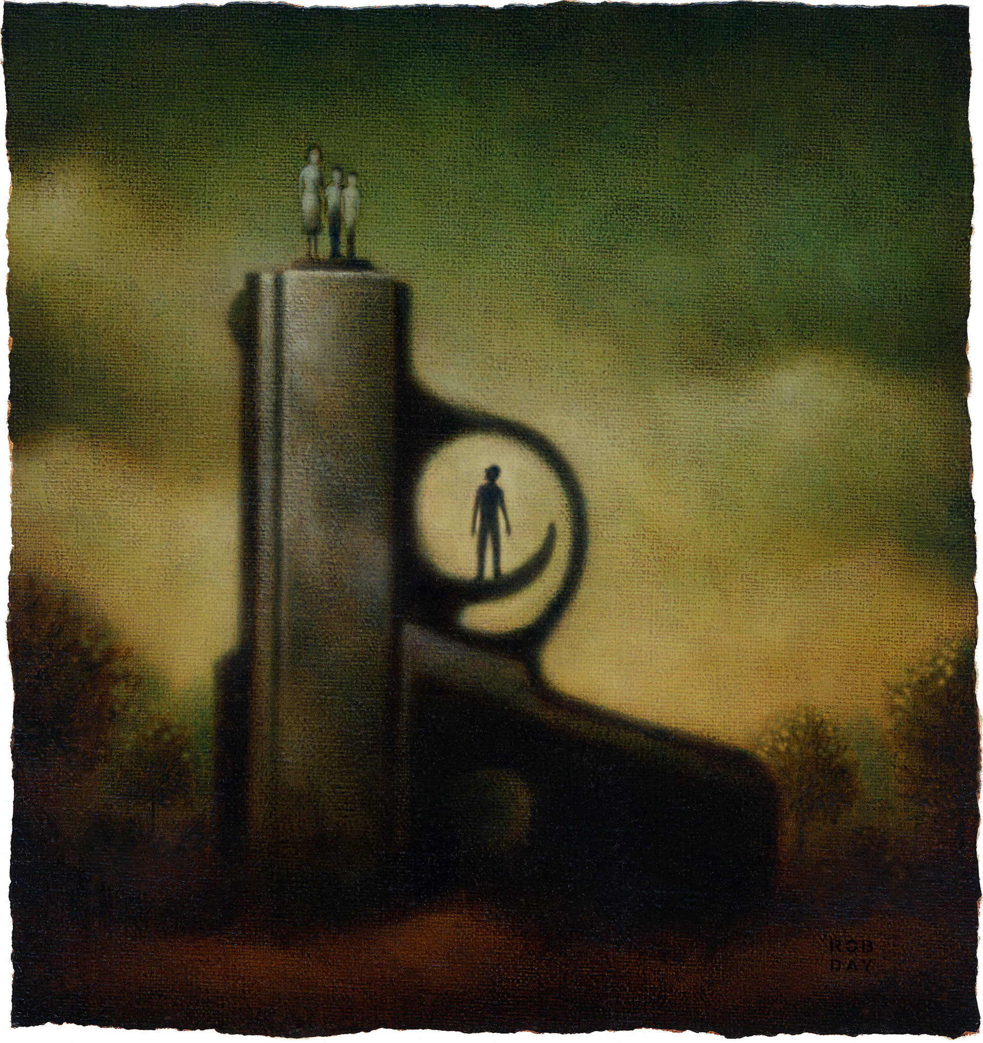 Oil on canvas illustration for a story about domestic gun violence published in a Florida magazine.