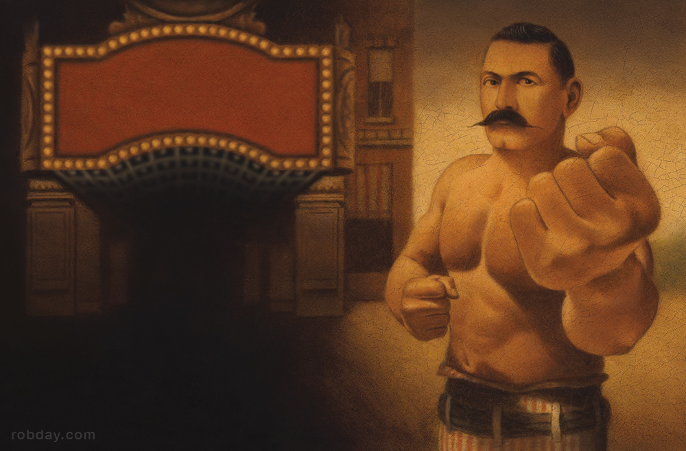 Portrait of John L. Sullivan, the last of the great bareknuckle boxers. This oil on paper illustration was commissioned and published in Sports Illustrated Magazine.